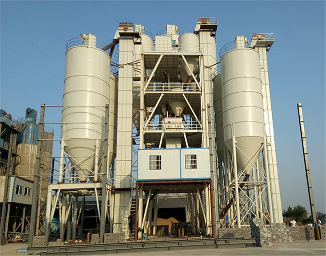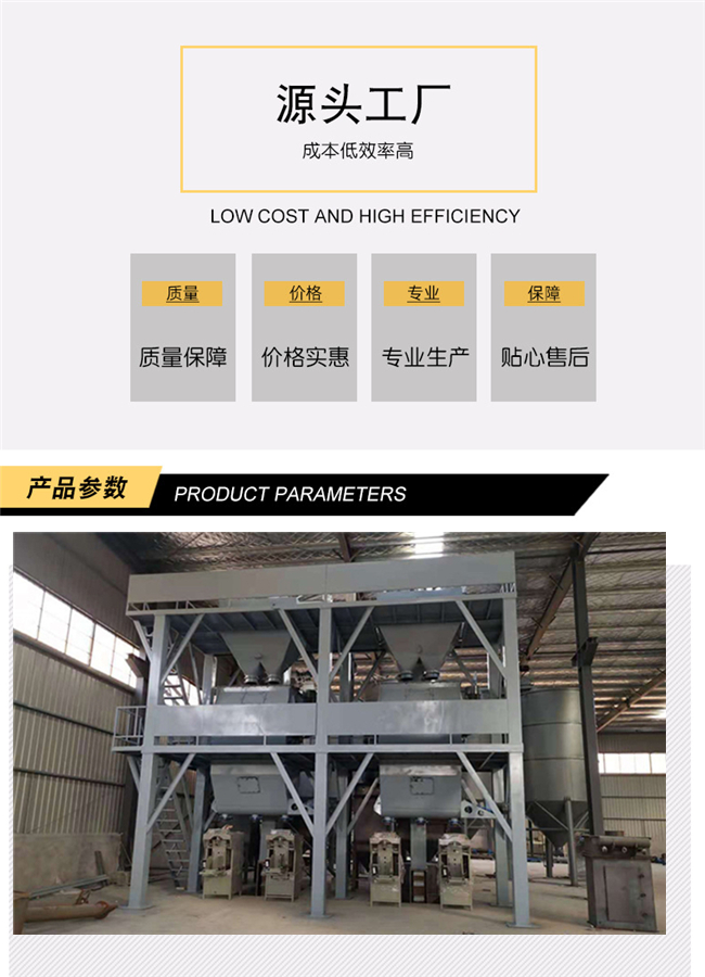 主要由提升輸送系統(tǒng)、計(jì)量配料系統(tǒng)、混合系統(tǒng)、儲(chǔ)料系統(tǒng)、包裝系統(tǒng)、除塵系統(tǒng)、控制系統(tǒng)、鋼架平臺(tái)等組成。